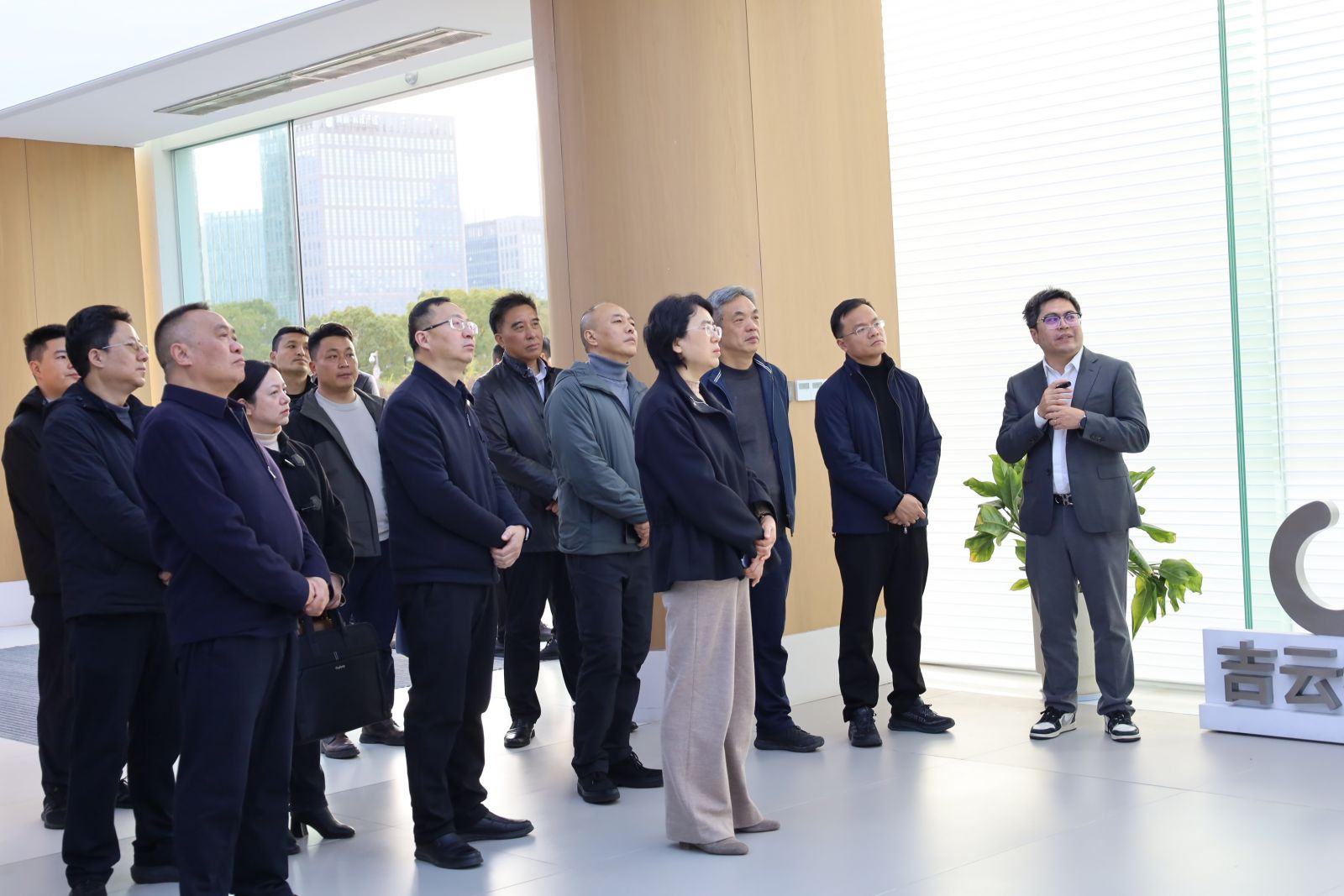 在集团总部,考察团一行实地参观了集团展厅,集团董事长曾步辉详细介绍了吉云在高素质技术技能人才培养、深入推进产教融合、服务区域经济发展等方面的探索实践和阶段性成果。近年来,吉云坚持以服务国家战略为导向,聚焦“教育链、人才链、产业链、创新链”有机衔接,打造了集教学、实训、研发、就业于一体的产教融合生态体系,形成了具有示范效应的“线上+线下”“校区+园区”发展模式,有效支撑了地方产业对高素质技术技能人才的需求。