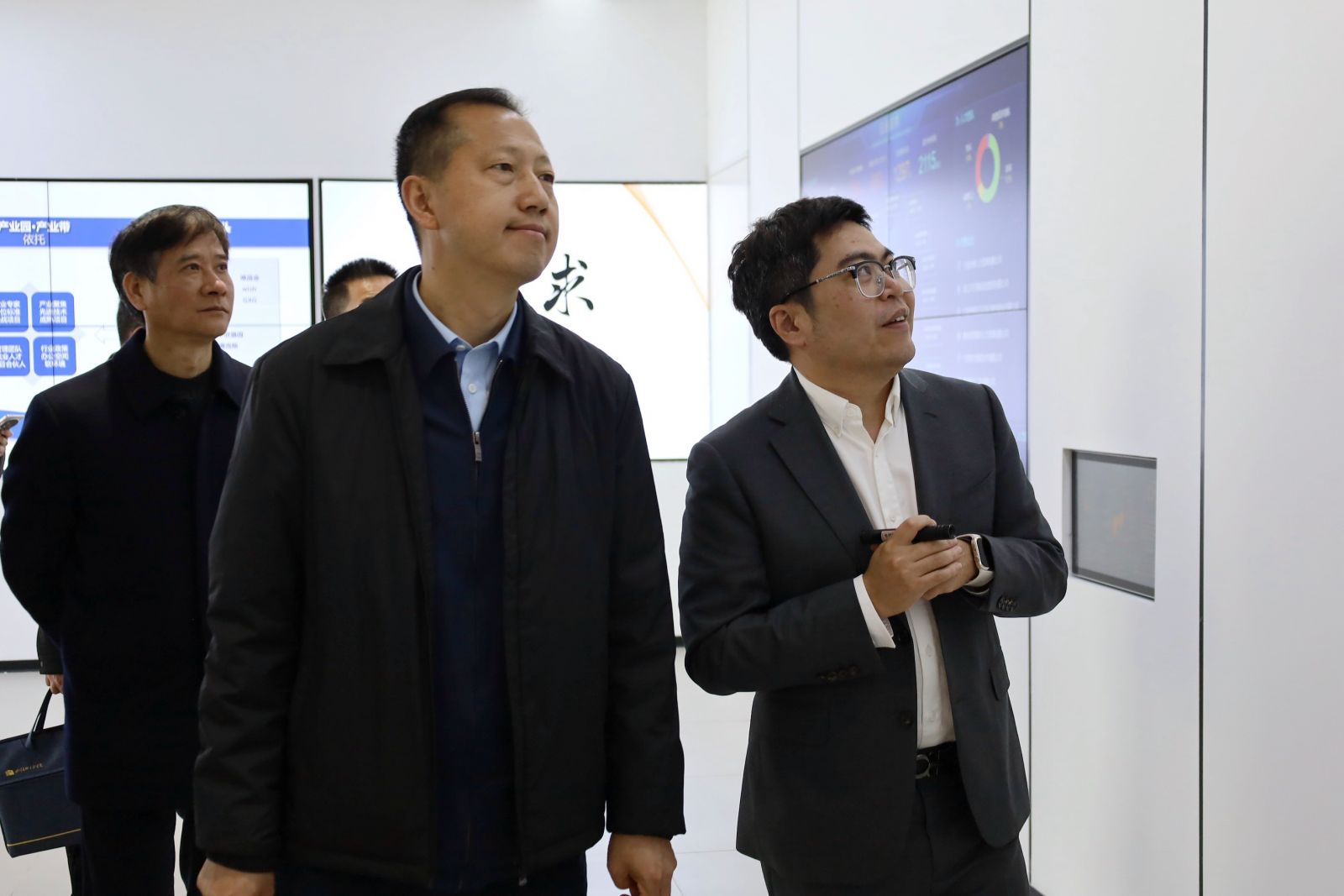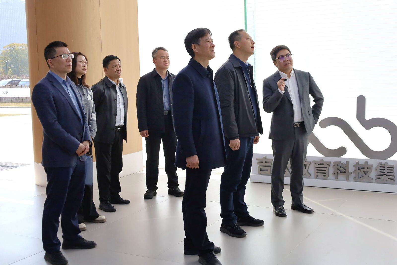 高晶晶一行首先参观了展厅,了解了集团的发展历程、核心业务布局以及在人才培养、产教融合等方面取得的显著成果。集团源起浙大,以产业培育为导向,开创性地打造了“线上+线下”“校区+园区”的人才培养模式,获得了调研组的高度认可。